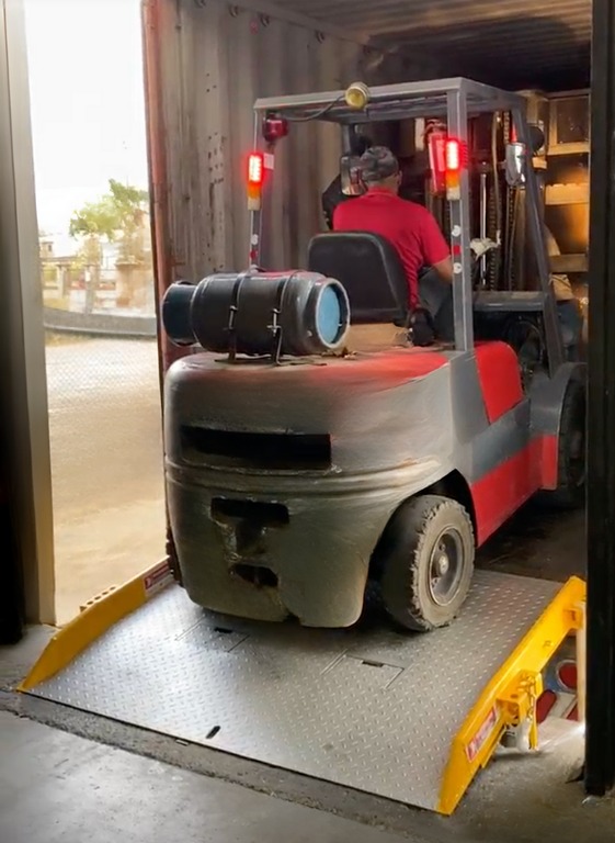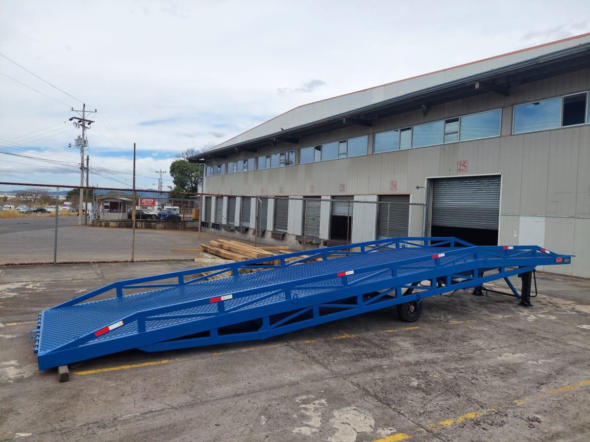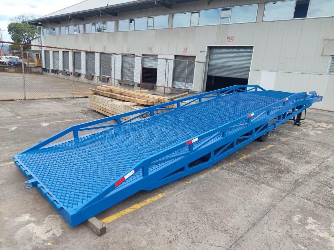 Se utilizan cuando no existe un andén o muelle de carga y se necesita una rápida movilidad del montacargas desde el contenedor al piso de la bodega y viceversa. La longitud de la rampa puede ser desde 9 hasta 12 metros. Son móviles por lo que se pueden transportar a diferentes puntos de patio de maniobras.